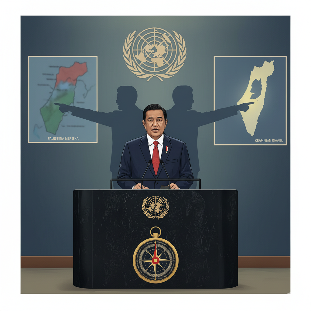 Dalam pidatonya di PBB pada 23 September 2025, Presiden Prabowo Subianto menegaskan kembali dukungan penuh Indonesia terhadap Solusi Dua Negara di Palestina. Ia menyampaikan, “Kita harus memiliki Palestina yang merdeka, tetapi kita juga harus mengakui dan menjamin keselamatan dan keamanan Israel. Hanya dengan demikianlah kita dapat mencapai perdamaian sejati: perdamaian tanpa kebencian, perdamaian tanpa kecurigaan.”